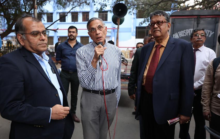 The curated route led participants through some of the campus’s most significant heritage structures. These included the main Medical College Hospital building, inaugurated in 1852 and central to the evolution of bedside learning in India; Eden Hospital, a pioneering centre for women’s and maternity care; and the Carmichael Hospital for Tropical Diseases, closely associated with early research on cholera and tropical medicine under Sir Leonard Rogers.