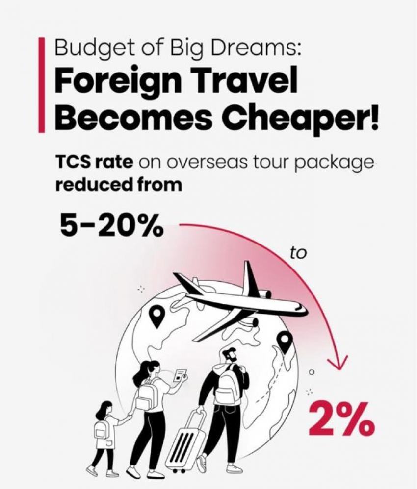 Indian travellers planning trips abroad may find the coming months particularly favourable, following a sharp reduction in tax collection at source (TCS) on overseas tour packages announced in the Union Budget on Sunday by Finance Minister Nirmala Sitharaman.